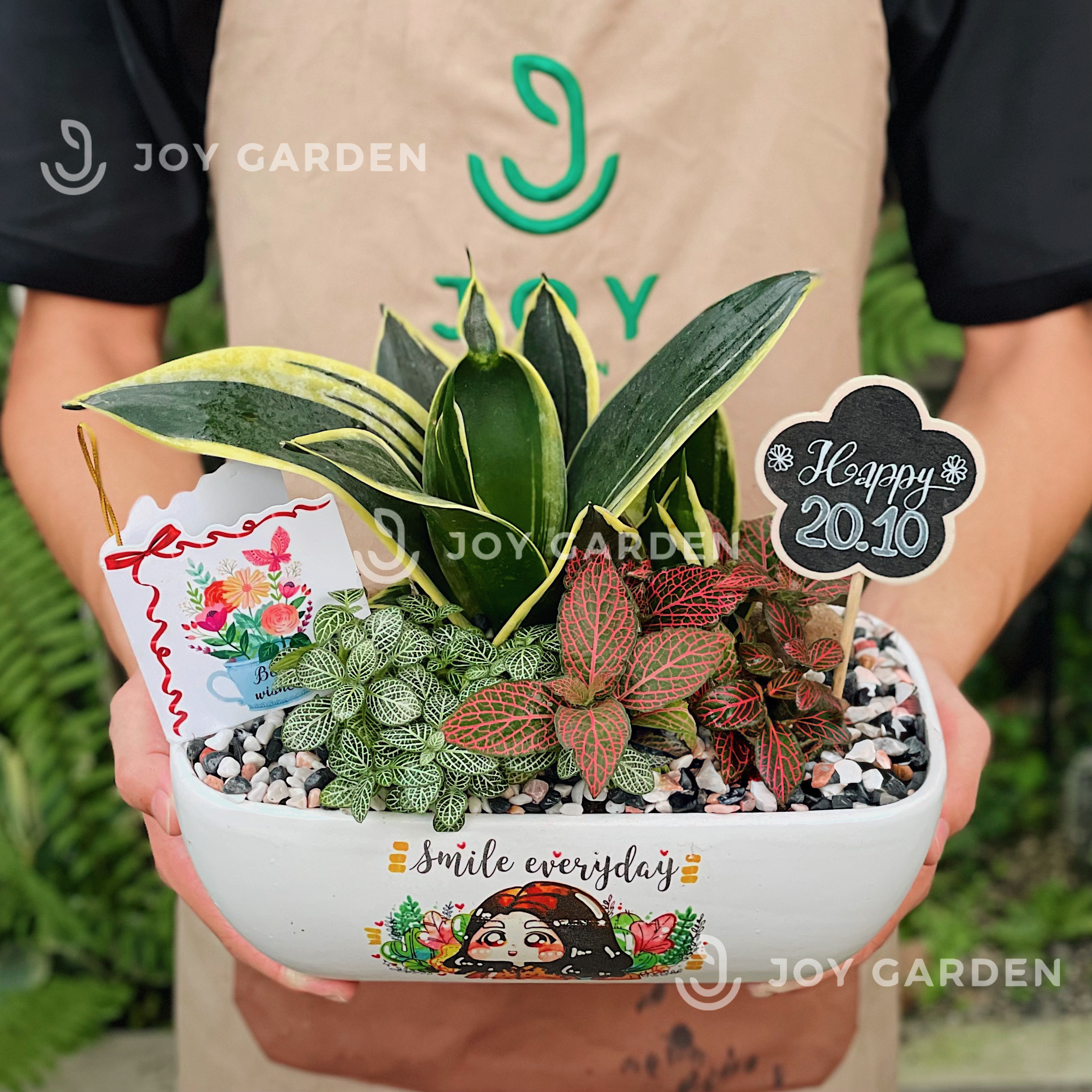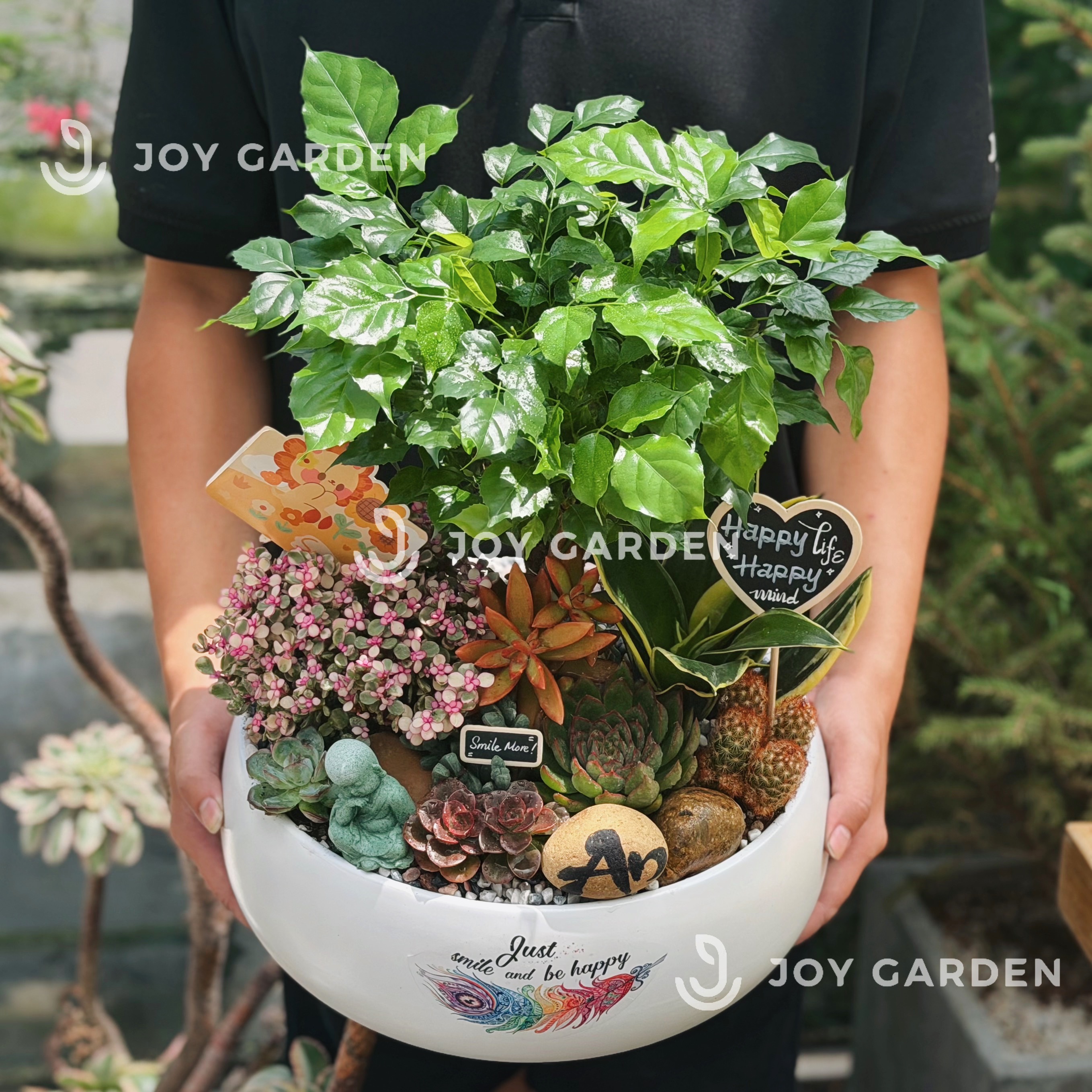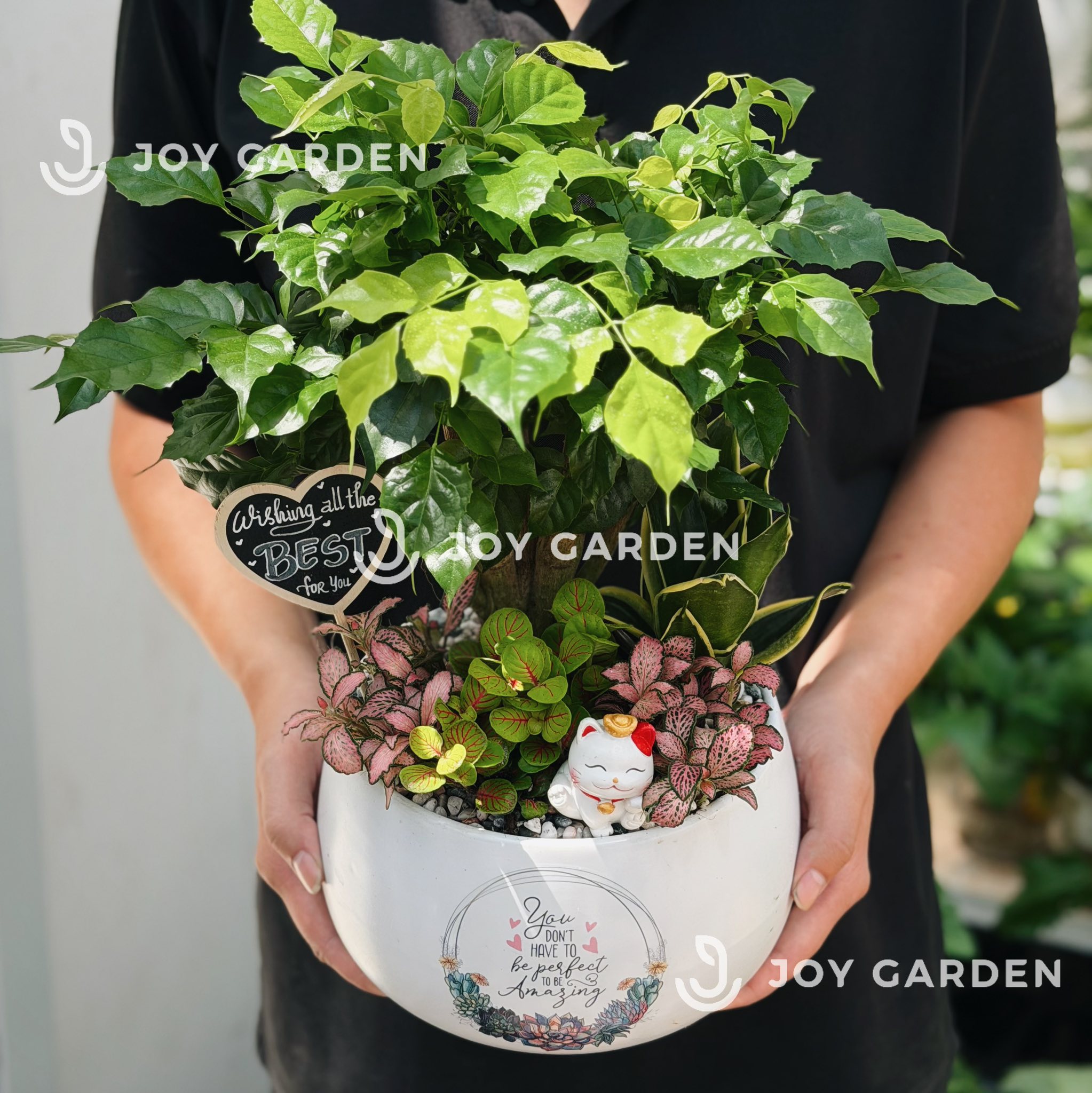 Một chậu cây đẹp và một lời chúc hay sẽ tạo ra điều bất ngờ & ấn tượng khó quên cho bạn bè, người thân. Joy Garden cung cấp các loại chậu quà tặng phù hợp với nhiều mục đích: tặng khai trường, mừng tân gia, tặng sinh nhật, ngày kỉ niệm… Có cây xanh đẹp, tươi tốt đặt trong nhà sẽ tạo ra phong thuỷ tốt và sinh ra nhiều năng lượng tích cực có ích cho người trồng.