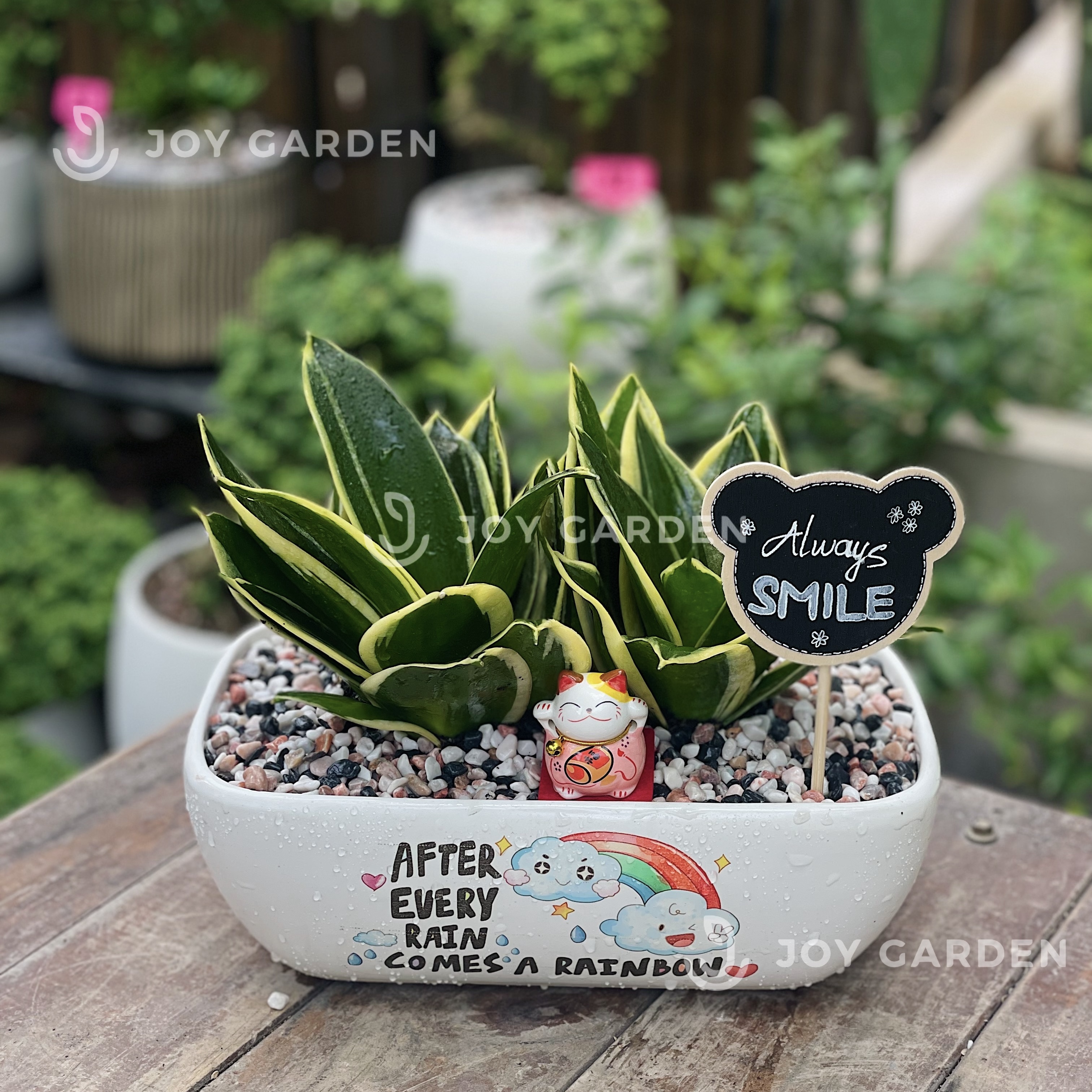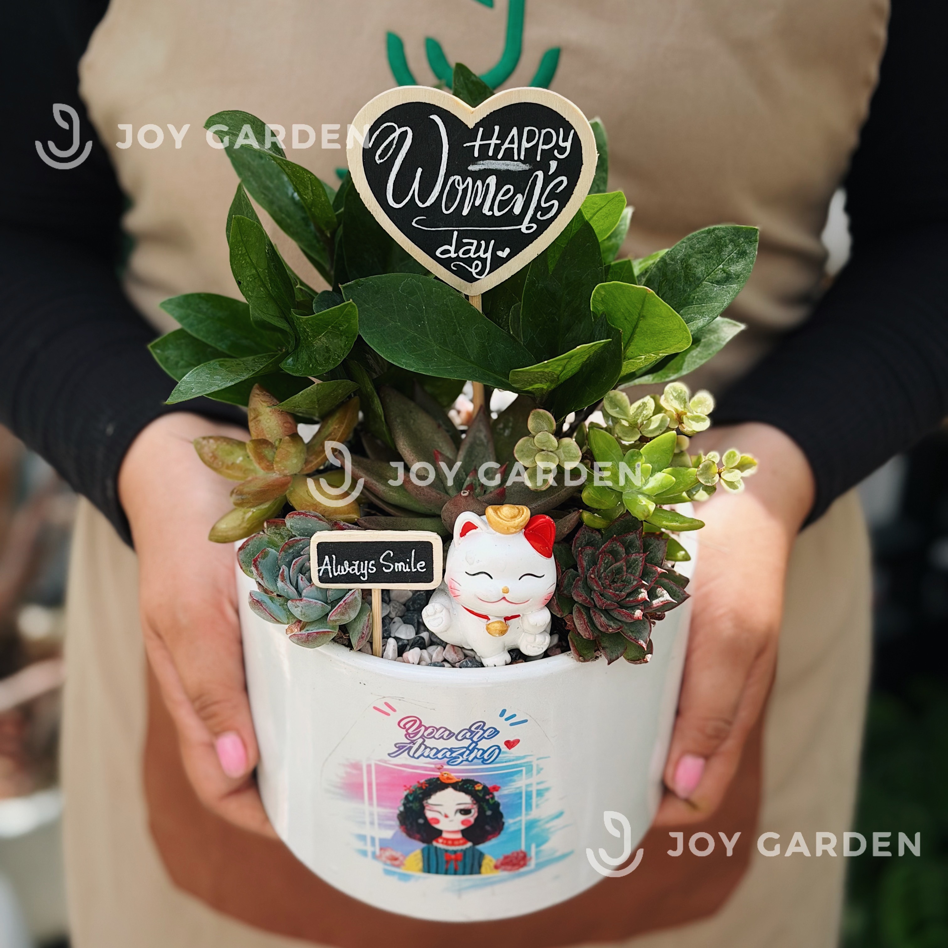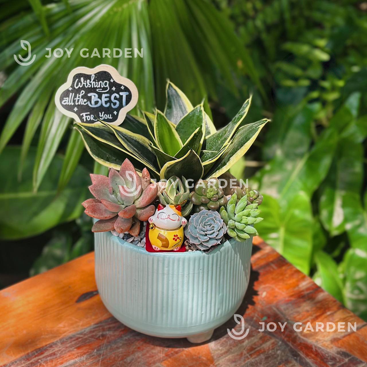Một chậu cây đẹp và một lời chúc hay sẽ tạo ra điều bất ngờ & ấn tượng khó quên cho bạn bè, người thân. Joy Garden cung cấp các loại chậu quà tặng phù hợp với nhiều mục đích: tặng khai trường, mừng tân gia, tặng sinh nhật, ngày kỉ niệm… Có cây xanh đẹp, tươi tốt đặt trong nhà sẽ tạo ra phong thuỷ tốt và sinh ra nhiều năng lượng tích cực có ích cho người trồng.